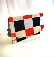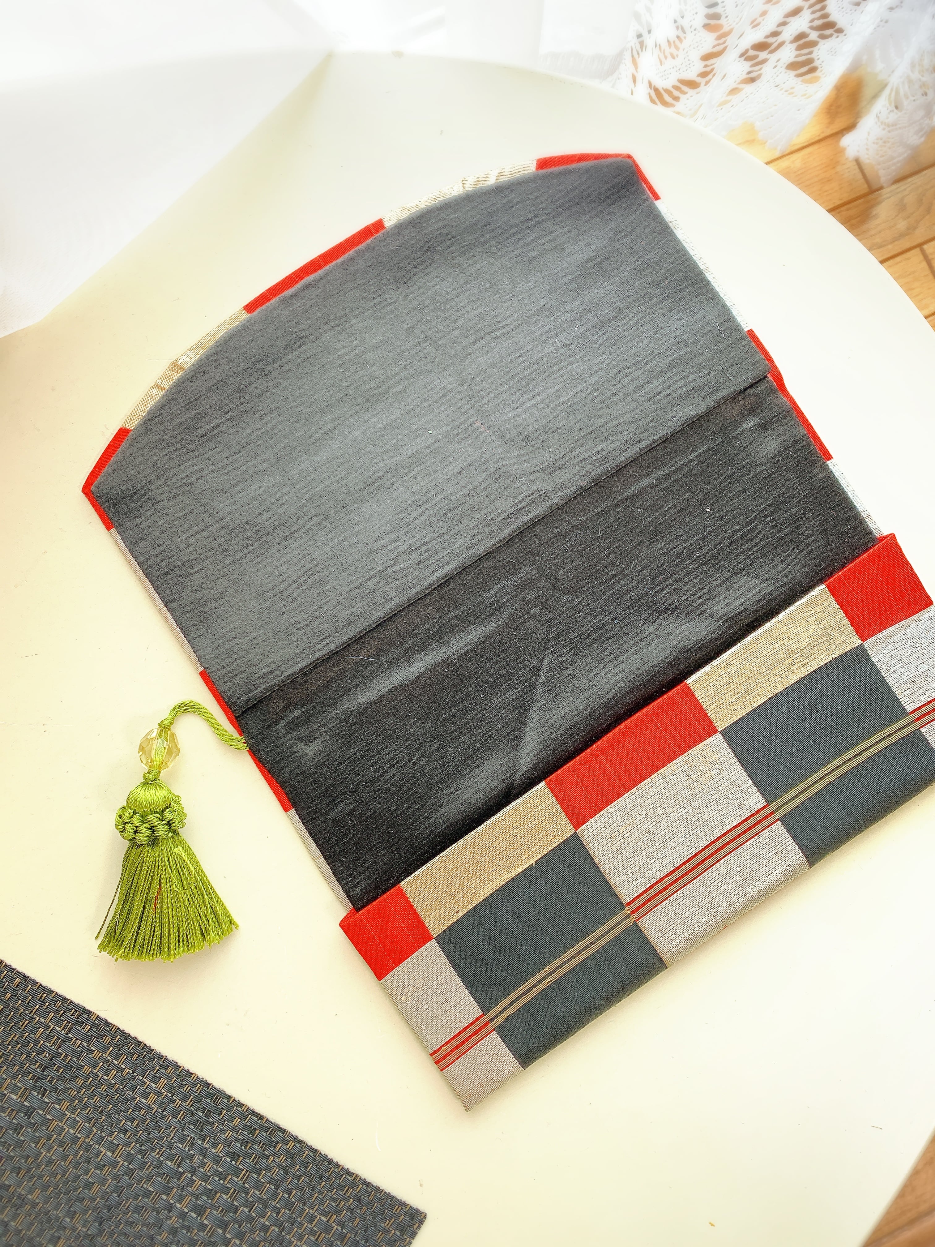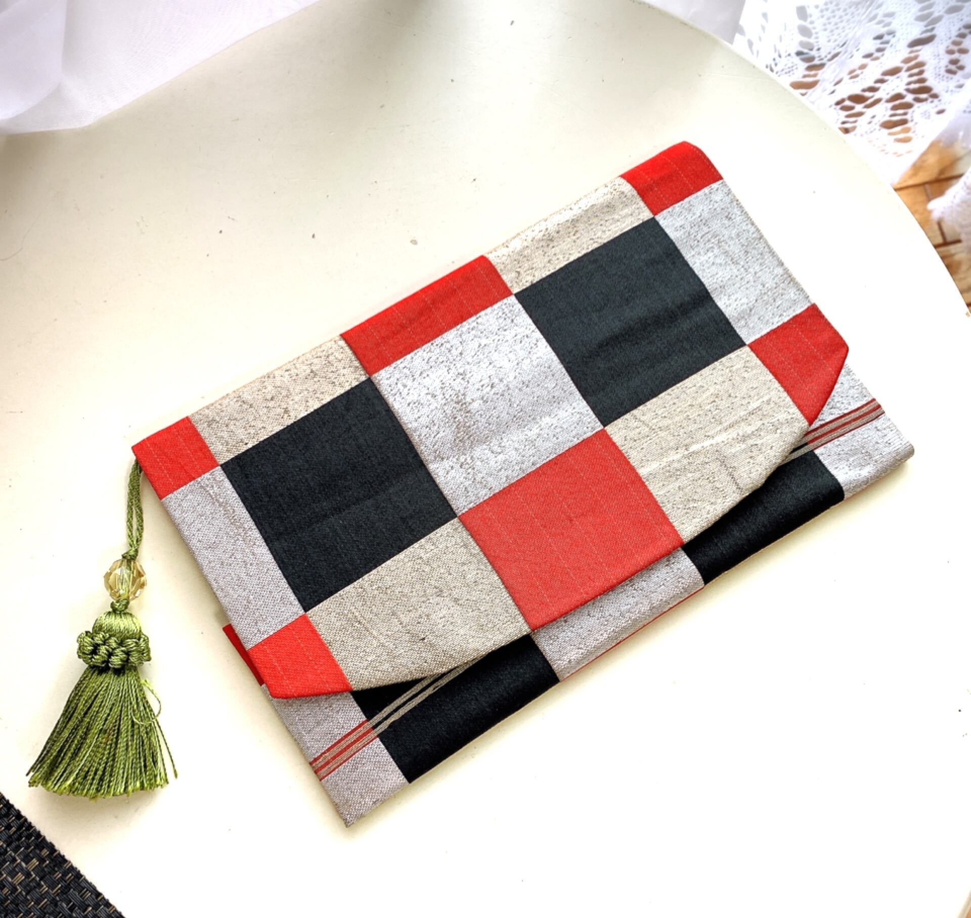 袱紗 帯で作る袱紗 市松黒x赤x金
