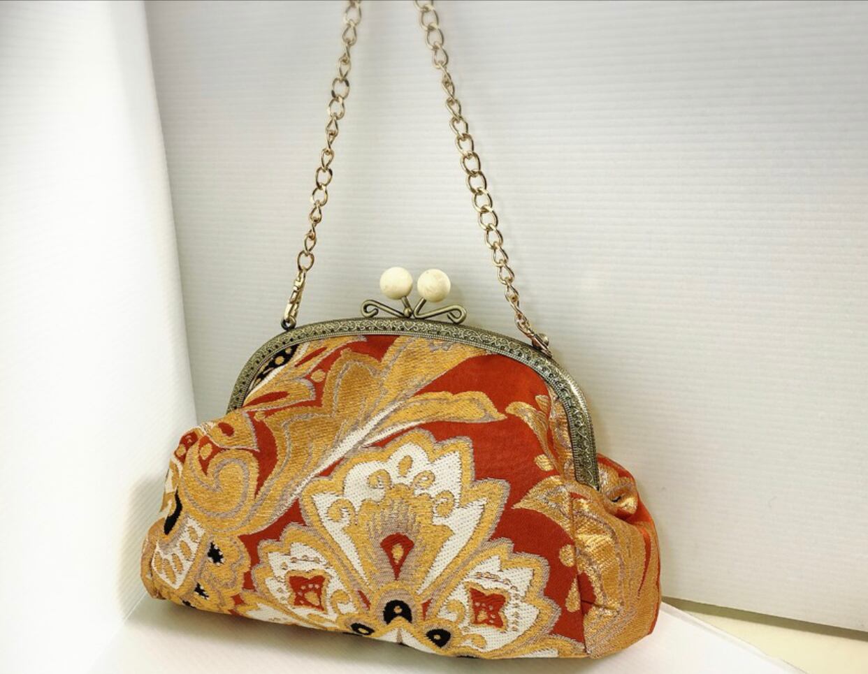 西陣織新品の帯で作った がま口帯バッグ
